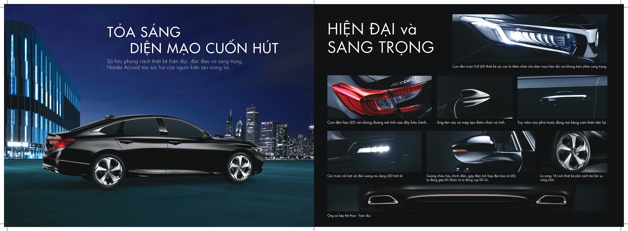 Sở hữu phong cách thiết kế hiện đại, độc đáo và sang trọng, Accord tỏa sức hút của người kiến tạo tương lai. Điểm nhấn cho diện mạo hiện đại chính là:
