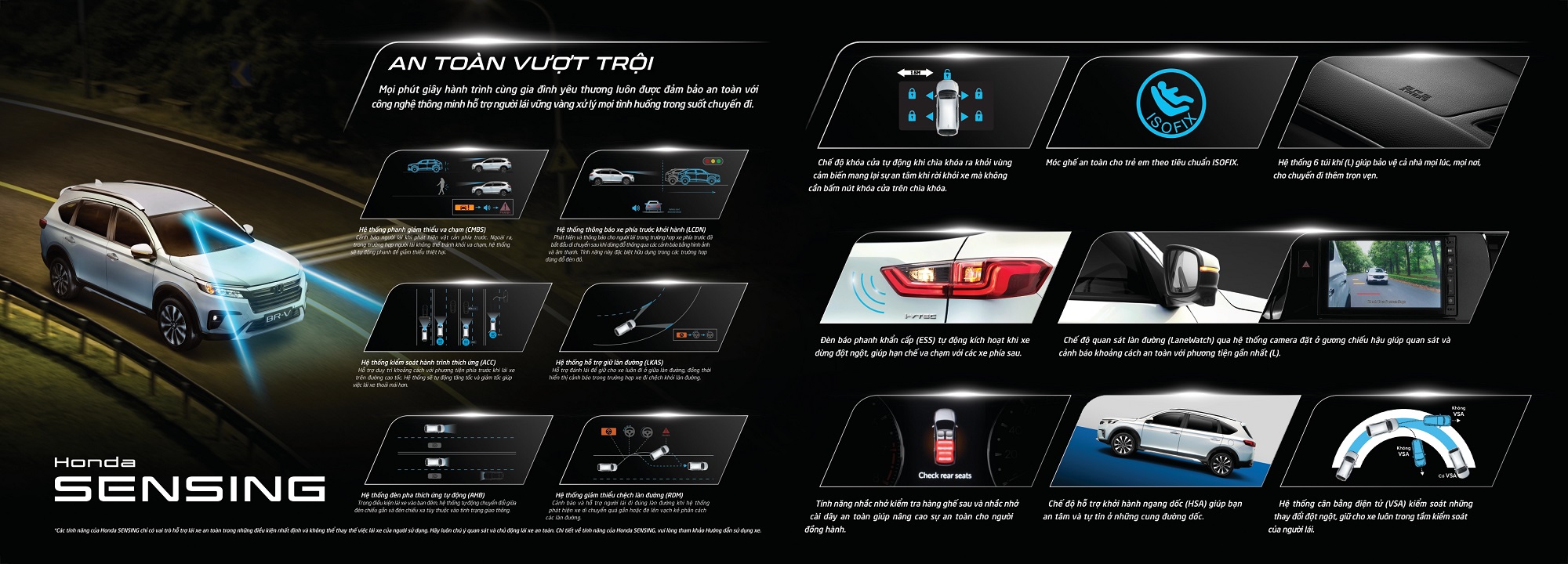 Honda BR-V hoàn toàn mới tiếp tục thể hiện cam kết của Honda trong việc cung cấp những phương tiện giao thông an toàn và đáng tin cậy, đồng thời nỗ lực góp phần hiện thực hóa mục tiêu "Không còn tử vong do tai nạn giao thông vào năm 2045" của Chính phủ Việt Nam. Đặc biệt, Honda BR-V hoàn toàn mới là mẫu xe đầu tiên trong phân khúc được trang bị Hệ thống công nghệ hỗ trợ lái xe an toàn tiên tiến Honda SENSING trên tất cả các phiên bản, bảo vệ toàn diện cho người lái, hành khách, người đi đường và các phương tiện xung quanh. Nhờ bộ xử lý nhanh nhạy, hệ thống sẽ đo khoảng cách và vị trí dựa theo thay đổi kích thước của mục tiêu, thời gian thay đổi xảy ra và tốc độ của xe, điều này cho phép camera trên kính lái có thể nhận dạng các vạch trắng, lề đường, xe máy, người đi bộ và người đi xe đạp. Hệ thống bao gồm 6 tính năng ưu việt: