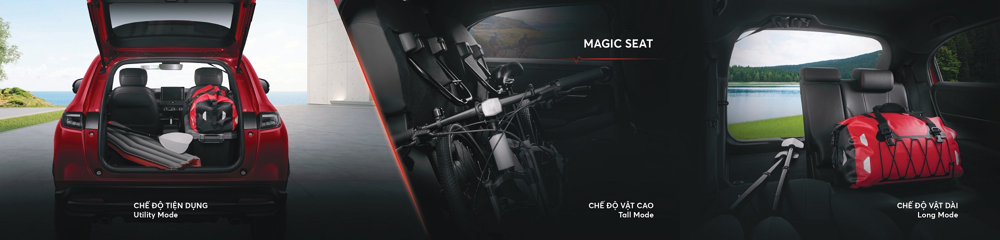 Cấu hình khung gầm cũng cho phép Honda giữ lại thiết kế Magic seat duy nhất trong phân khúc đặc biệt linh hoạt với 3 chế độ: chế độ tiện dụng, chế độ đồ vật cao, chế độ đồ vật dài, cho phép hàng ghế sau có thể gập phẳng hoặc lật lên tùy từng mục đích sử dụng.